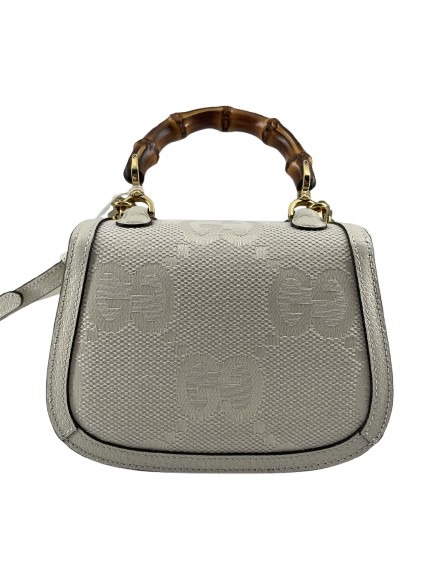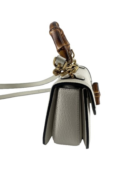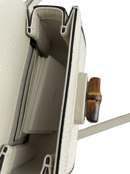 Timeless elegance meets innovative design in the Gucci Bamboo Handbag. Crafted from pristine white canvas, this exquisite piece embodies the brand’s rich heritage of luxury and craftsmanship. The bamboo handle, a hallmark of Gucci’s signature style, not only adds a touch of natural beauty but also pays homage to the brand’s dedication to sustainable luxury. With dimensions of 17 cm in width, 11 cm in height, and a depth of 6 cm, this handbag is both compact and functional, perfect for the discerning individual who values sophistication. A testament to Gucci’s legacy, the Bamboo Handbag is an essential addition to any refined wardrobe, seamlessly transitioning from day to night with effortless grace.